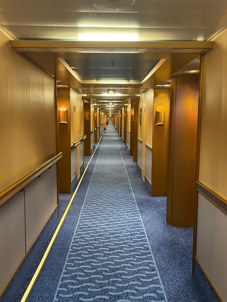 La primera impresión que nos dio el crucero fue que no había forma alguna de no perderse, pasillos de 400 metros donde se ubicaban todos los camarotes, más de 11 pisos, 6 restaurantes, 9 piletas, 12 bares, una heladería, un casino, un shopping y un montón de lugares más que seguro no llegamos a conocer (Incluso una capilla, adaptada a muchas religiones).