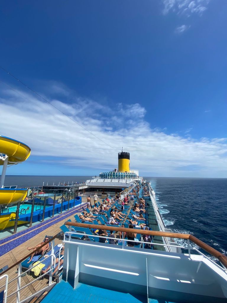 A partir de este momento nos quedó solamente relajarnos y disfrutar de la merienda, y a las 18 en punto ( son super mega puntuales) el barco empezó a moverse saliendo del Puerto de Buenos Aires con destino a Rio de Janeiro, nuestra próxima parada. Hasta llegar, íbamos a tener dos días de navegación completos para disfrutar a pleno de todas las actividades del barco.